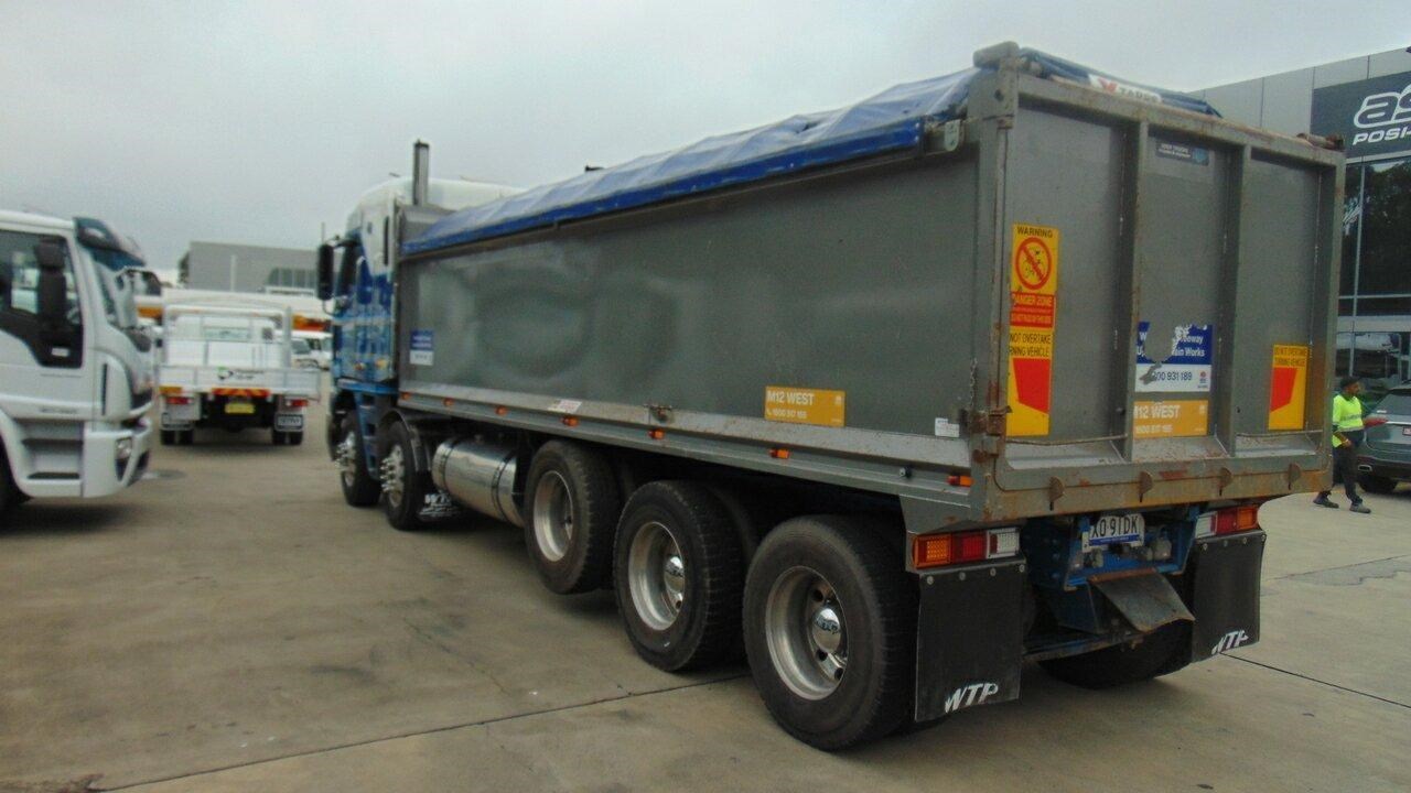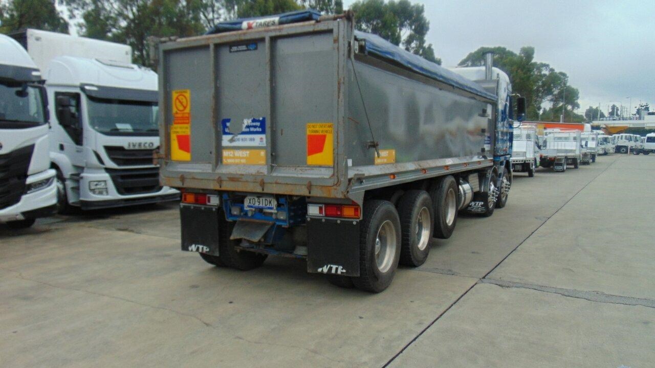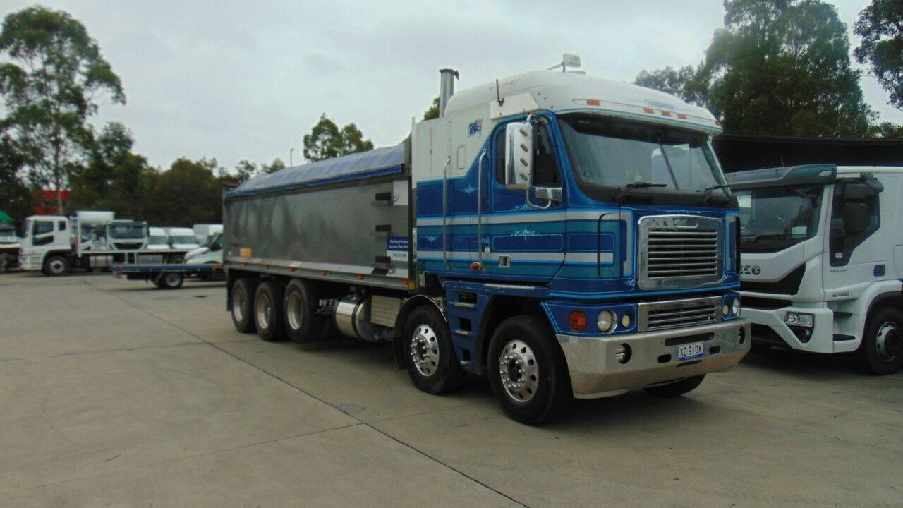 2007 Freightliner 110 Argosy Silver Tipper 15.0l 10x4 - 2007 Freightliner Argosy 10x4, 7m Bisalloy bin, 2 way tailgate, 1200 high sides, power tarp, Alco rims, Ringfeeder, 550hp Cat engine with rebuild history, lift up axle, GVM is nominal 31,500 and with a tare of 13,640 the payload is 17,860. Metal bumper, sunvisor, sleeper cabin, 18 speed roadranger gearbox. Call the used truck sales team to arrange an inspection.