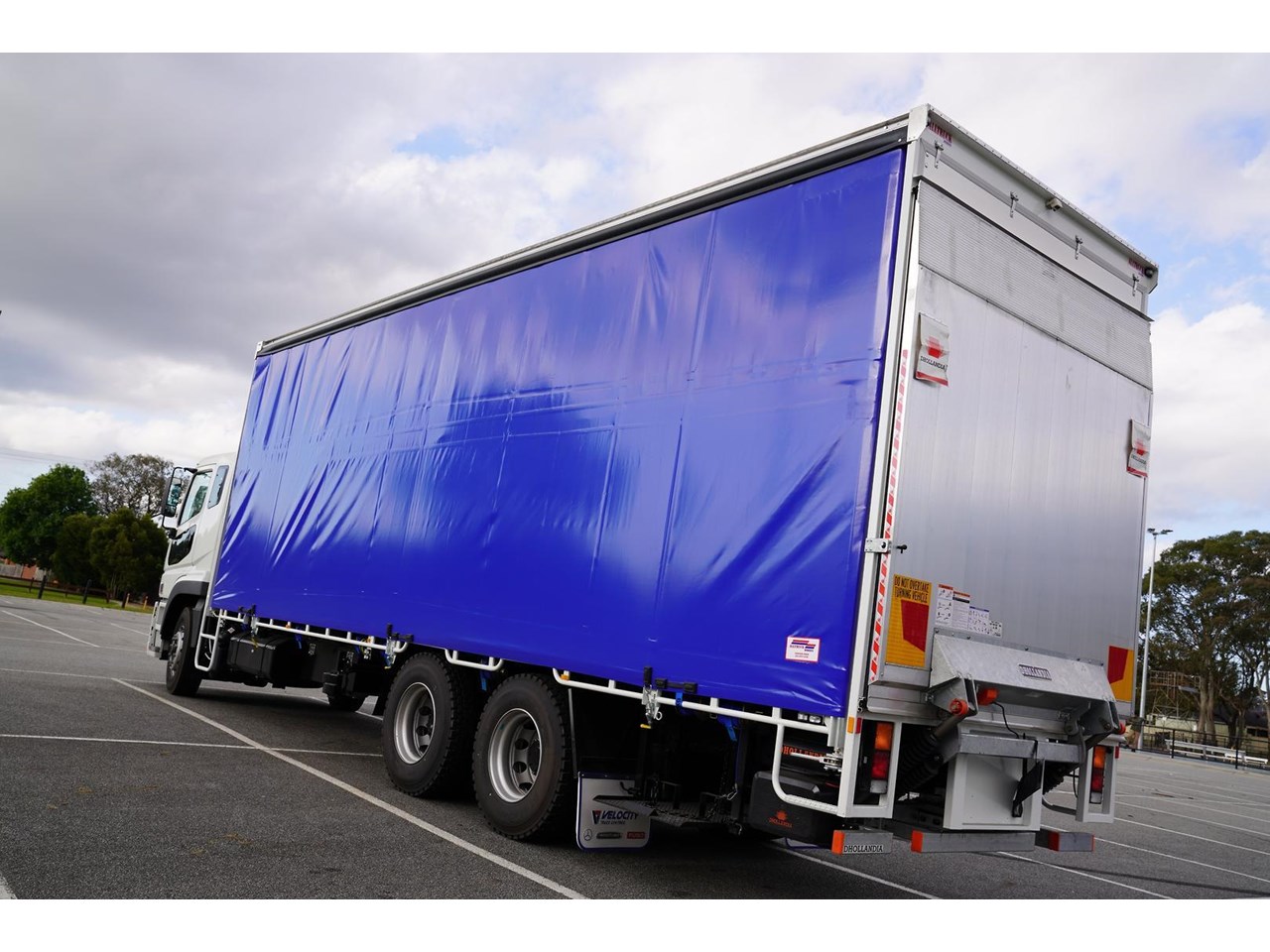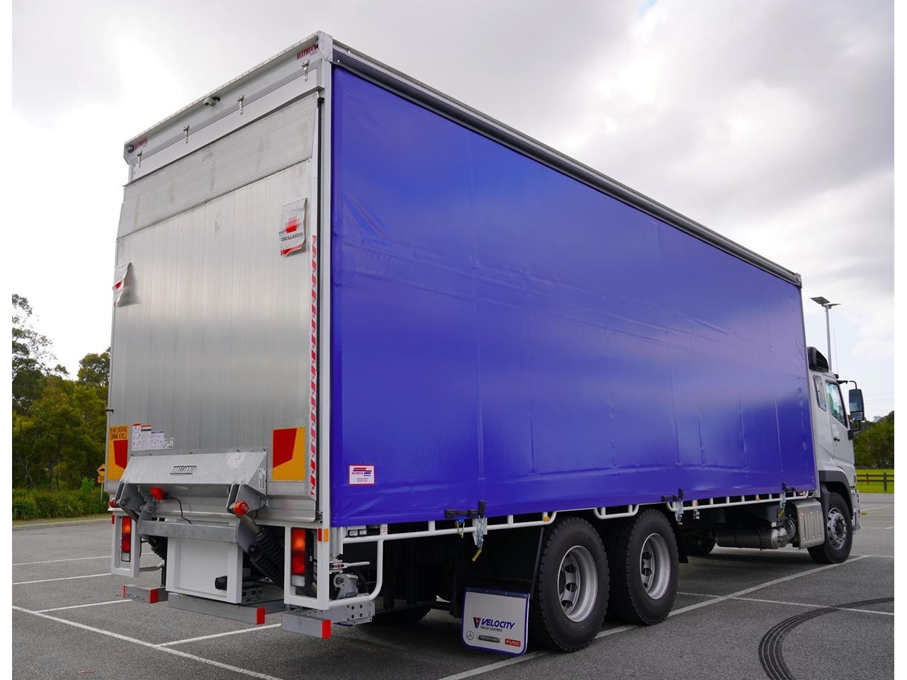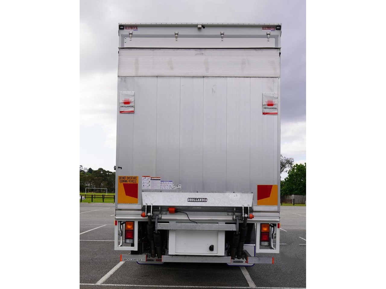 The 14 Pallet Curtainsider is built by one of or local builders, Alltruck. The 14 pallet curtain sider is 9000mm long x 2490mm wide with a 2700mm side load. 5mm steel checker plate floor, Lightning latch curtains, 1500mm high gates, 7x load binders, front and rear tensioners and a 2-ton Dhollandia cantilever tailgate with a 2450 x 2600 platform.
