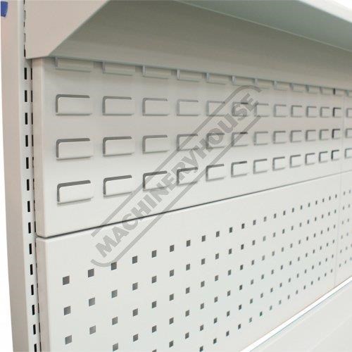 The louvred backing panel which incorporates a fixed top and bottom shelf is a great addition. A complete range of tool hooks, hangers and storage buckets are also available making storing and locating your tools much easier.