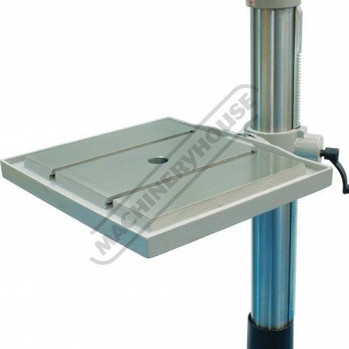 This machine is heavy duty rated and the large drill head has a work light fitted underneath to shine directly onto your job, the large Ø62mm quill provides support to increase accuracy & the 470 x 415mm square table offers more surface area to work on than any other drill on the market.