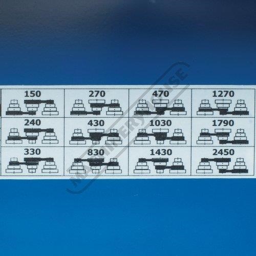 12 Spindle speeds - 150 240 270 330 430 470 830 1030 1270 1430 1790 2450rpm