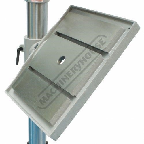 The drill quill is equipped with a large 4 morse taper spindle allowing you to fit 4MT drill bits directly to the spindle or 1,2 or 3MT drill bits with optional adaptors. A quality Ø3-Ø16mm keyed drill chuck with 4MT arbor is included & fitted. The drill table can tilt left or right, and the height is also easily adjusted up or down via rack & pinion hand lever & can be locked into position. Furthermore, the whole table assembly can be swivelled away to allow the machined base to be used as a work support.