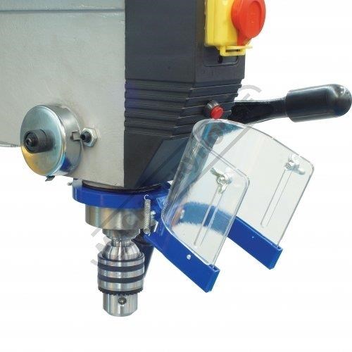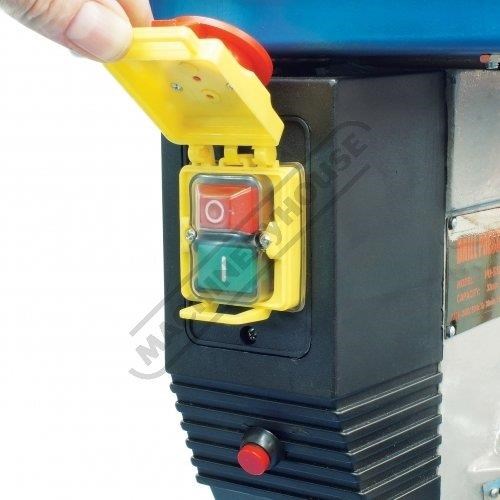 The magnetic safety switch with emergency stop is conveniently front mounted for quick access. The drill also includes an adjustable safety drill chuck guard and the belt cover is equipped with a safety switch to ensure safe belt speed changing.