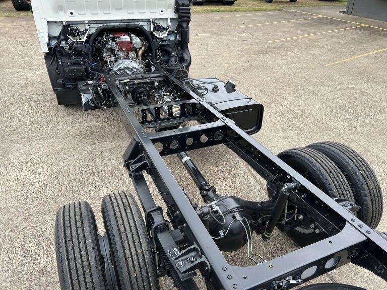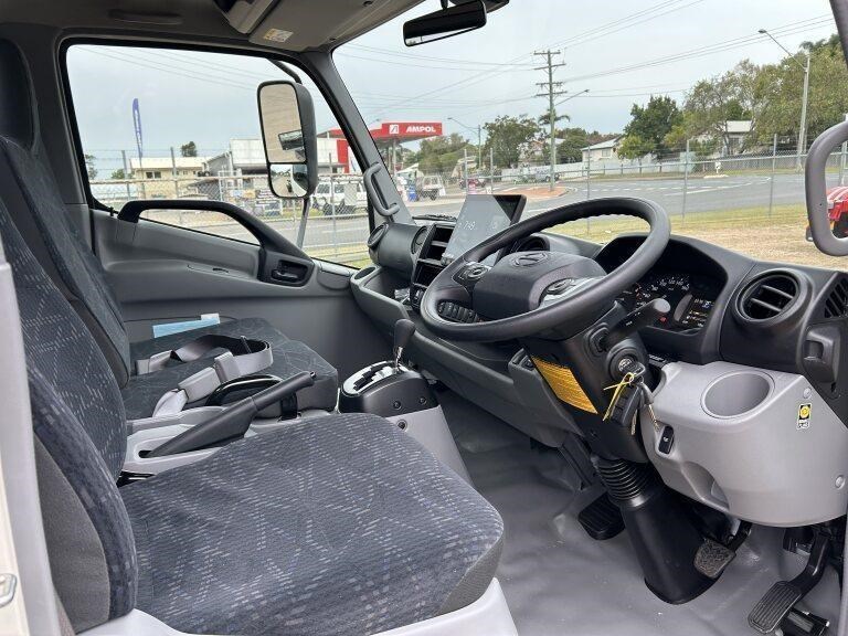 This Hino 616 sits on a 3430mm wheelbase and has a 150hp turbo diesel 4-cylinder engine combined with a proper automatic 6 speed transmission.