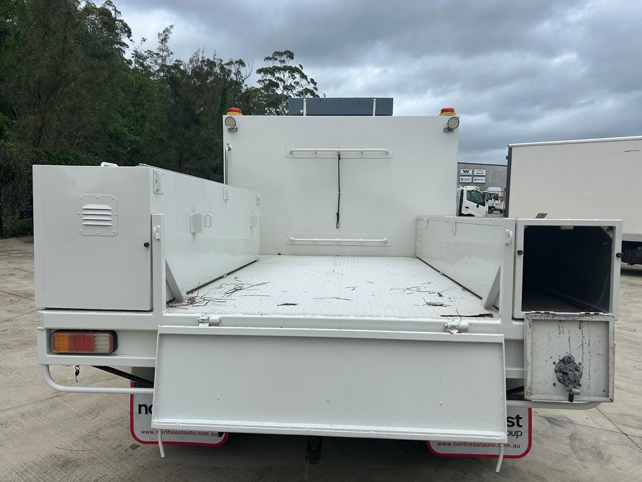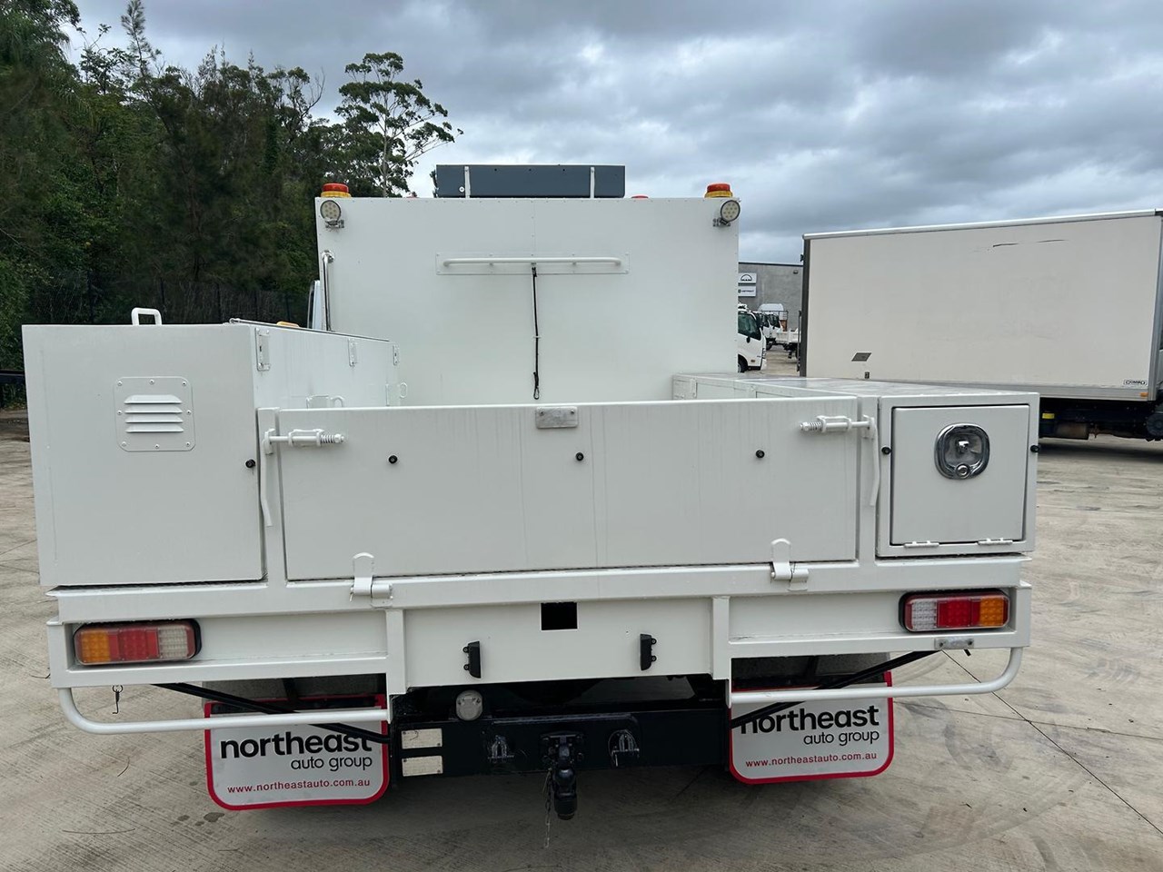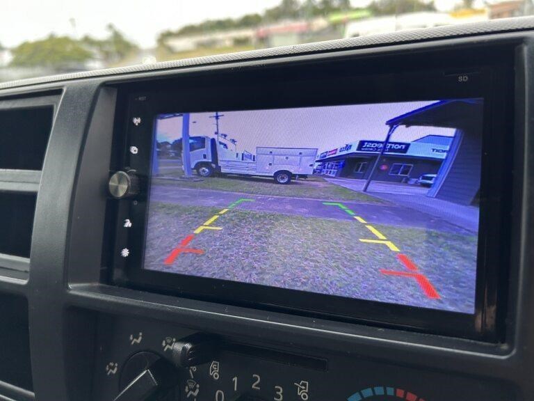 Fitted with steel service body with 5 storage tool boxes, reverse camera, 3500kg rated tow bar and canvas seat covers.