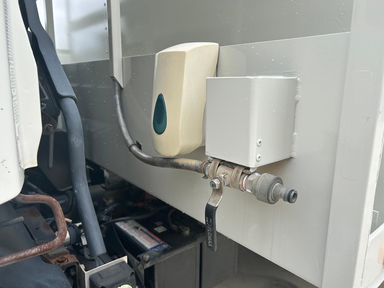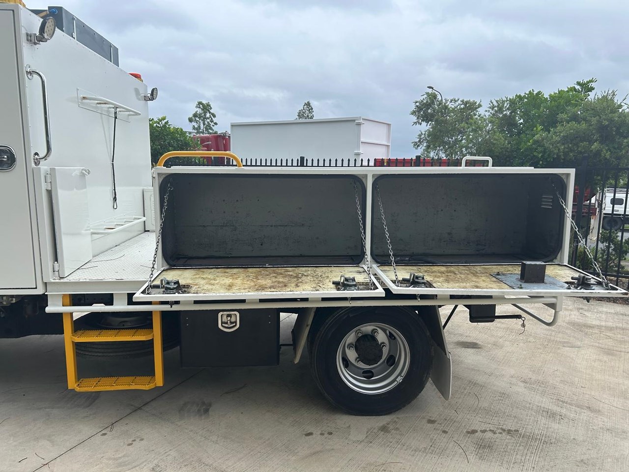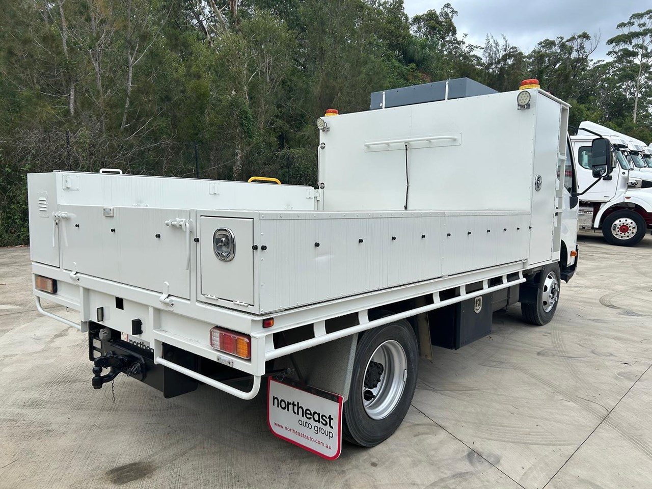 Fitted with steel service body with 5 storage tool boxes, reverse camera, 3500kg rated tow bar and canvas seat covers.