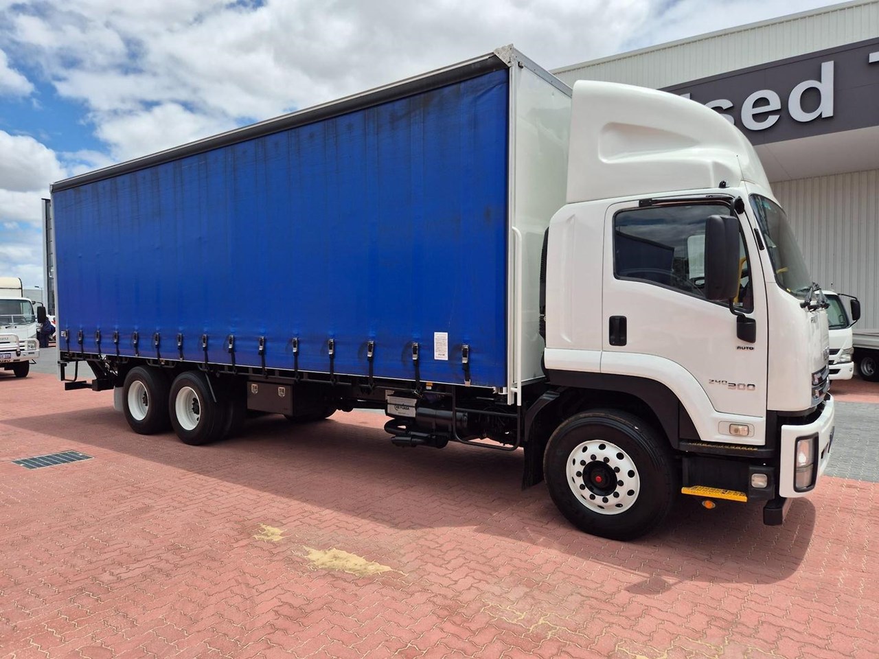 2022 Isuzu FVL240-300 AUTO 6x2 14 Pallet Tautliner with Low Low Klms, just back from having New Curtain's Fitted.
