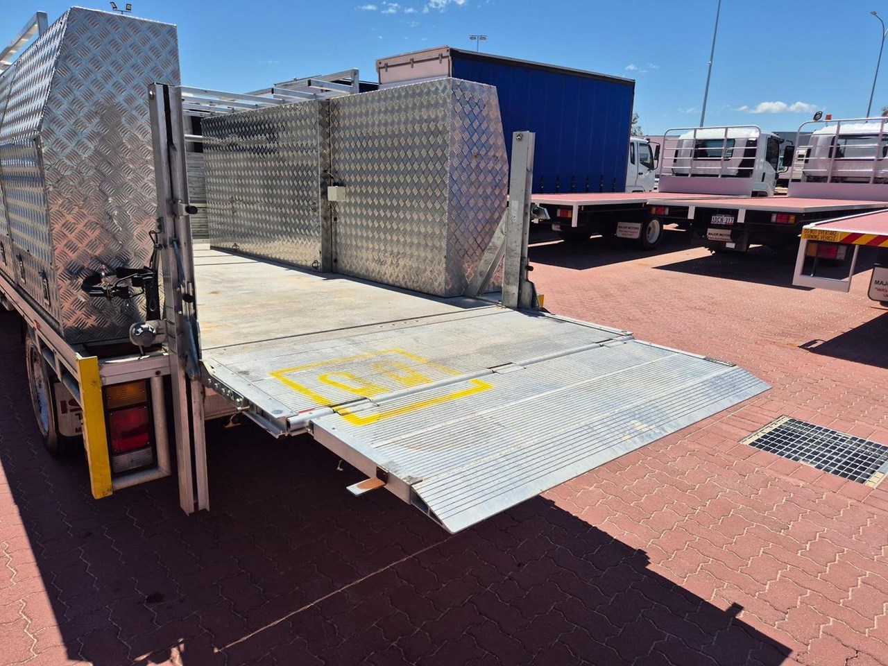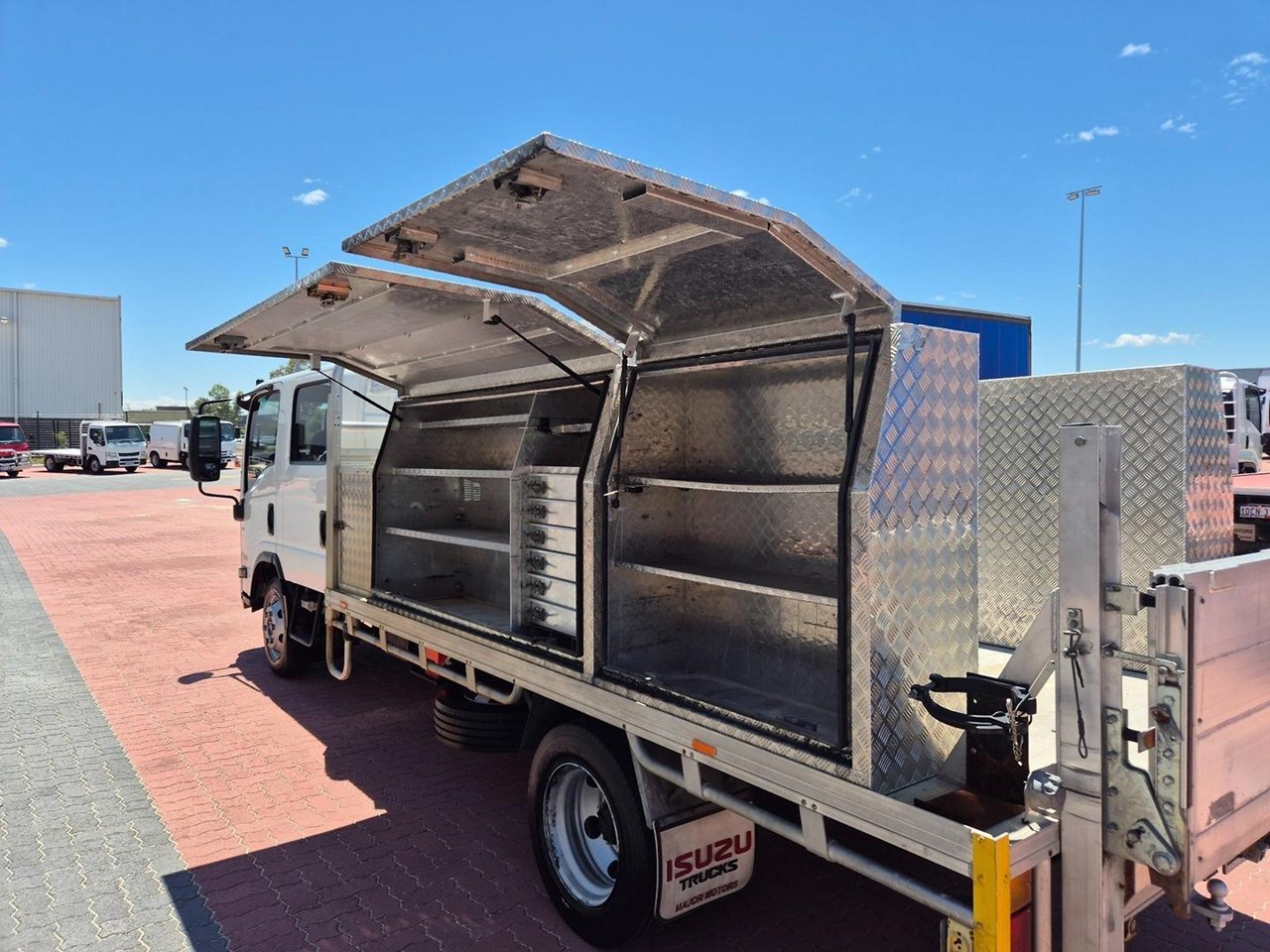2019 Isuzu NPR75-190 AMT 4 ton Crew Cab with the Massive 190HP Powerplant coupled to a 6 Speed (Automated Manual Transmission) complete with a 4.1m Heavy Alloy Tray with Full Toolboxes down both sides and a 500kg Tommy Gate Lift at the Rear.