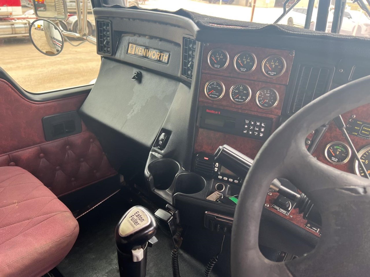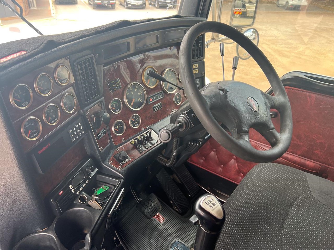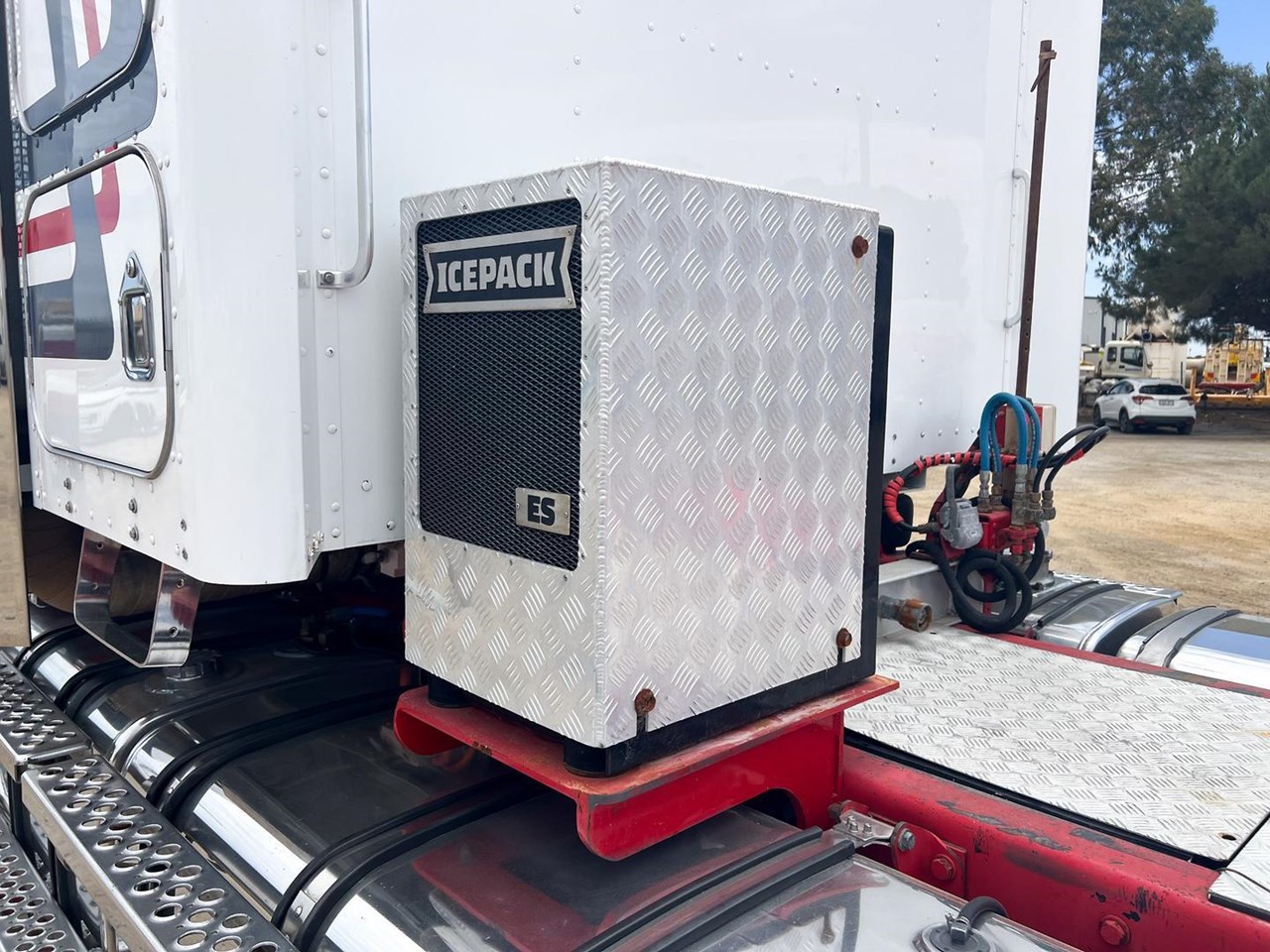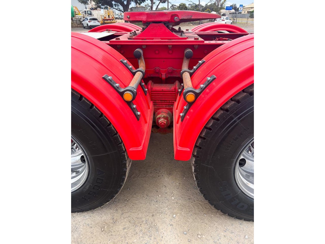 2009 Kenworth T908 6x4 Prime Mover,600 hp Cummins ISX EGR eng with 18 spd manual trans-RTL022918B-Dana RT52-190 Rear axle @ 4.56 on Kenworth KW6-60A 21T 6 rod spring susp,Alloy wheels and FUPS bull bar,Offsets on steer,36" low roof intergreated sleeper with Icepack-ES bunk air con,PTO hydraulics set up for end and side tippers,Diff and X Locks to both rear axles,2" fixed QRTT,Fuel tank on RHS converted to toolbox,Alloy water tank,Dolly pull in rear,Alloy walkplate,Rad/Cd, is a good spec heavy rated truck.