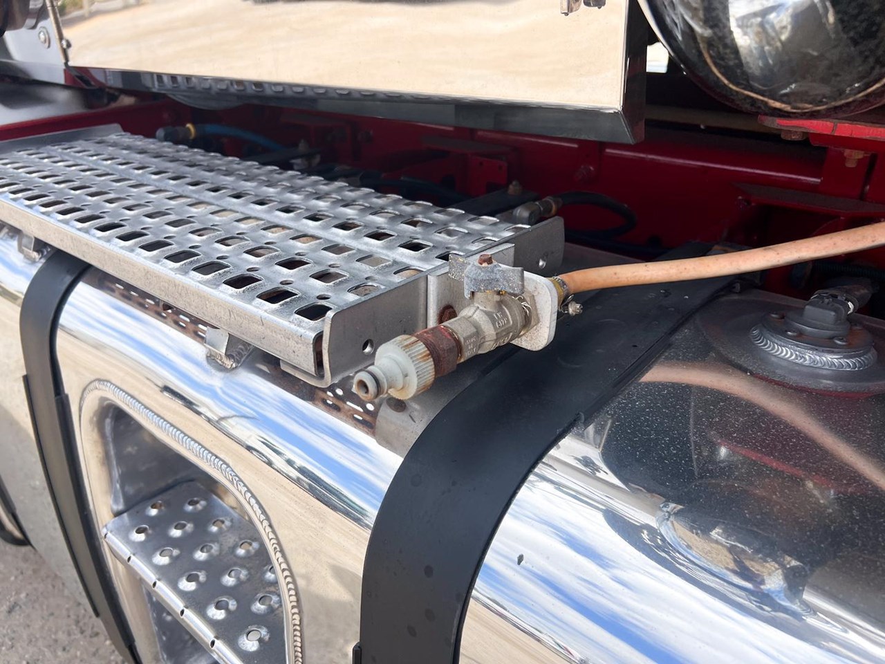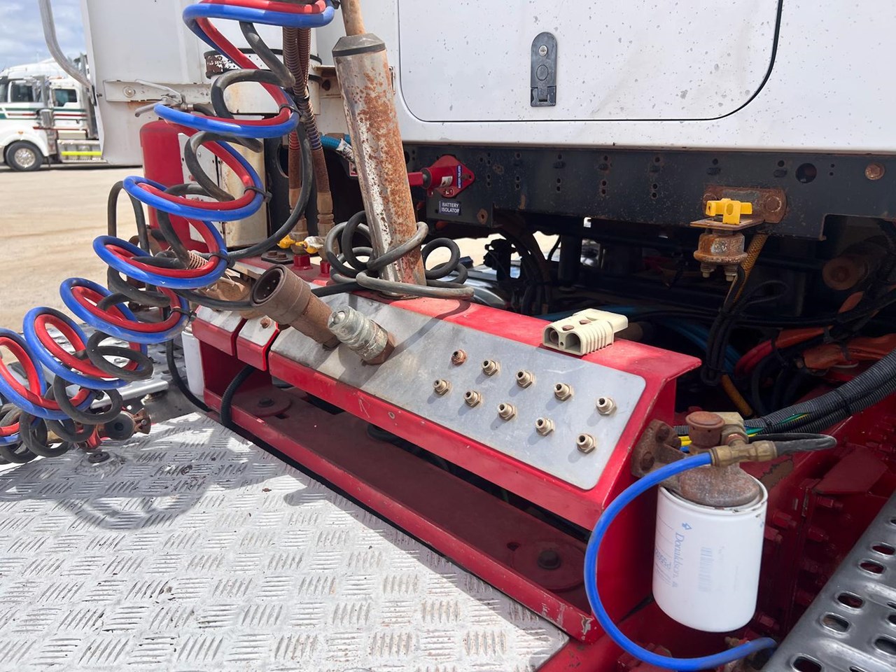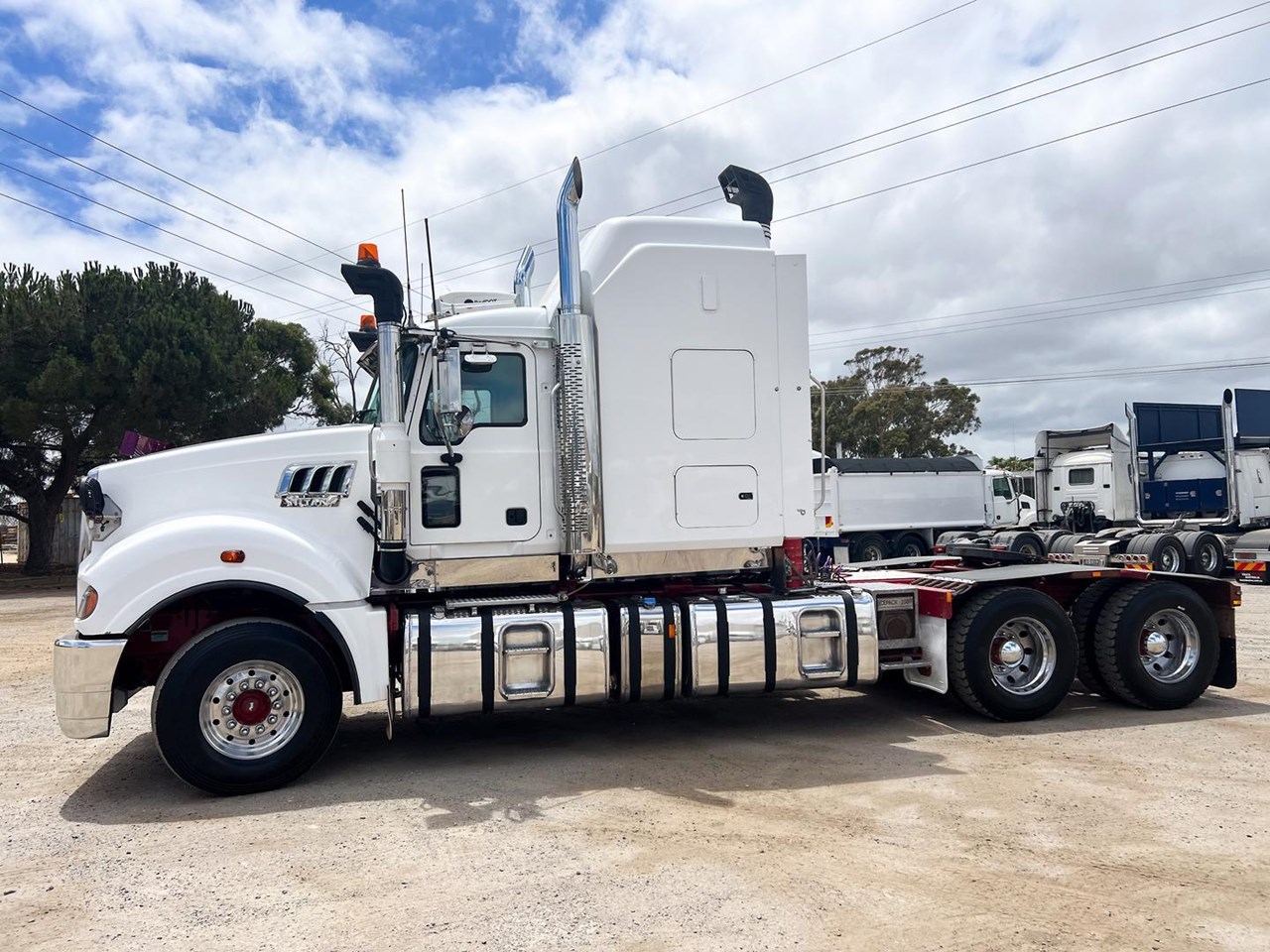 2014 Mack Titan 6x4 Prime Mover.600 hp 16 ltr Mack MP10 eng-Has engine rebuild history- with 18 spd trans-RTL022918B-Meritor RT52-185 rear axles on Mack spring susp,Alloy FUPS bumper and wheels,Super singles on steer,64" high roof intergreated sleeper with Icepack-2000 bunk air con,Alloy water tank,Diff and rear axle x lock,Alloy water tank,Rubber drive gaurds,PTO Hydraulics for side tippers,Dolly pull in rear with air and electric fittings,RAD/CD,UHF,Rotating beacons,Roof mounted air con is a solid heavy rated truck.
