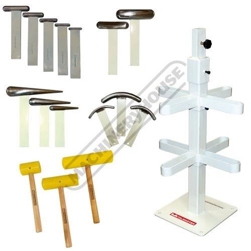 This metal shrinker stretcher also has a sturdy floor stand with foot pedal control to actuate the dies allowing your hands to be free to properly work the material.