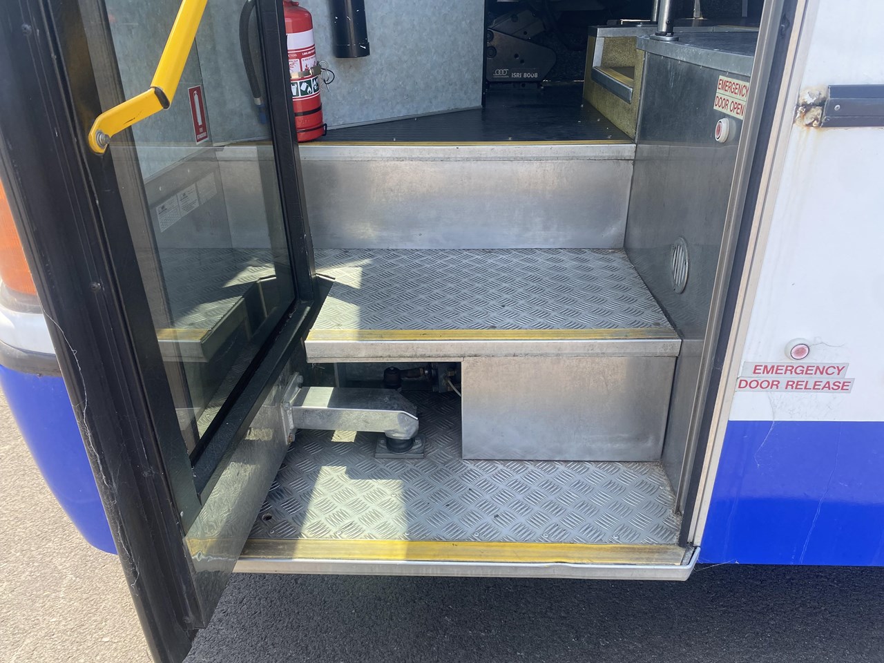 6 cylinder diesel engine, rear mount, Comfortshift 7 speed manual gearbox, air suspension, power steer, full air brakes, maxi brake, tubeless wheels, Custom Coach 510 brand one door bus body, 12.5 metre length, flat floor, 6ft 6 inch headroom, 61 fabric bus seats, nearside bins, roof hatches, upright top slider windows. Ideal for mobile home.