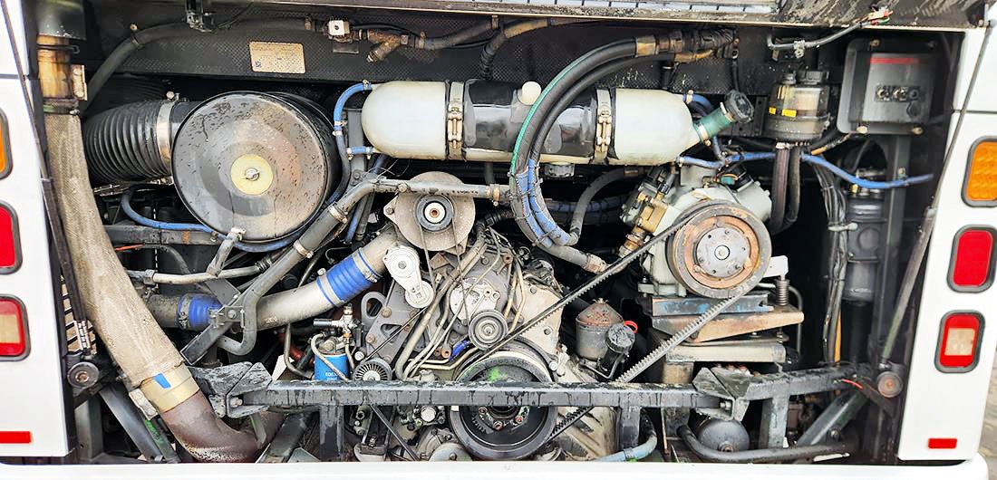 This vehicle has been used on public transport services and local school charter work and is currently still in service, demonstrating its reliability and readiness for continued operation.