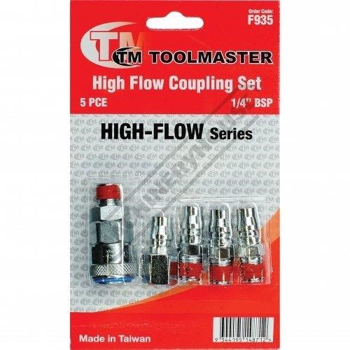 TOOLMASTER Coupling Set - 5 Piece Pack High-Flow Air Fittings 1/4`` BSPT