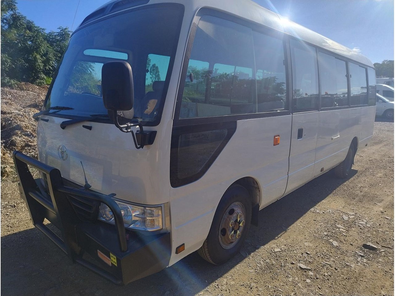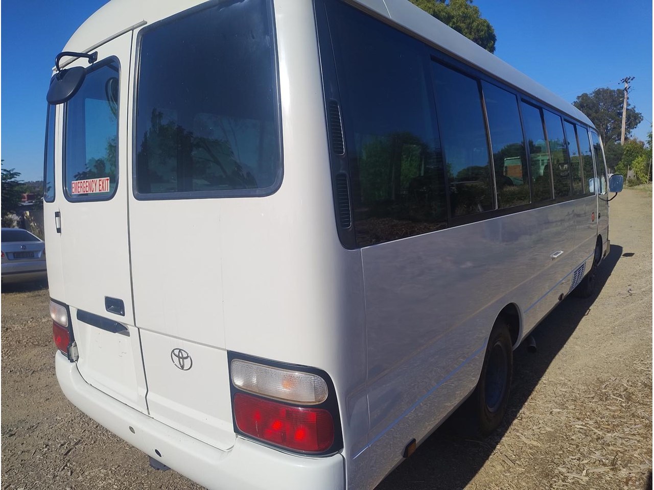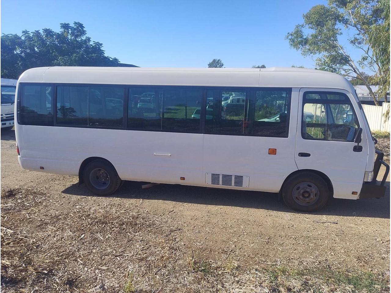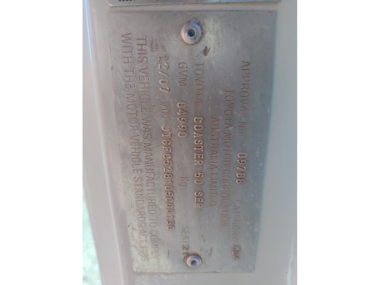 2007 Toyota Coaster Deluxe 21 seat bus, 4.1L turbo Diesel inter-cooled, 5 speed manual, steel bull bar, very tidy bus, well maintained, runs and drives well. Ready for use as a bus or motor home conversion.